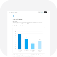 Ask Simon to find answers, create documents and presentations, analyze performance data, or research a market. Every response is grounded in your firm's actual data, tied back to sources, and filtered by permissions.